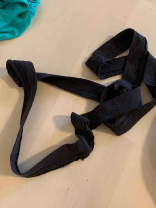 Save the bottom seam of one of the shirts you use for later, and use the other however you want, I’m not your mom. I made a headband out of the first shirt’s bottom seam that lasted for 17 seconds. Maybe.