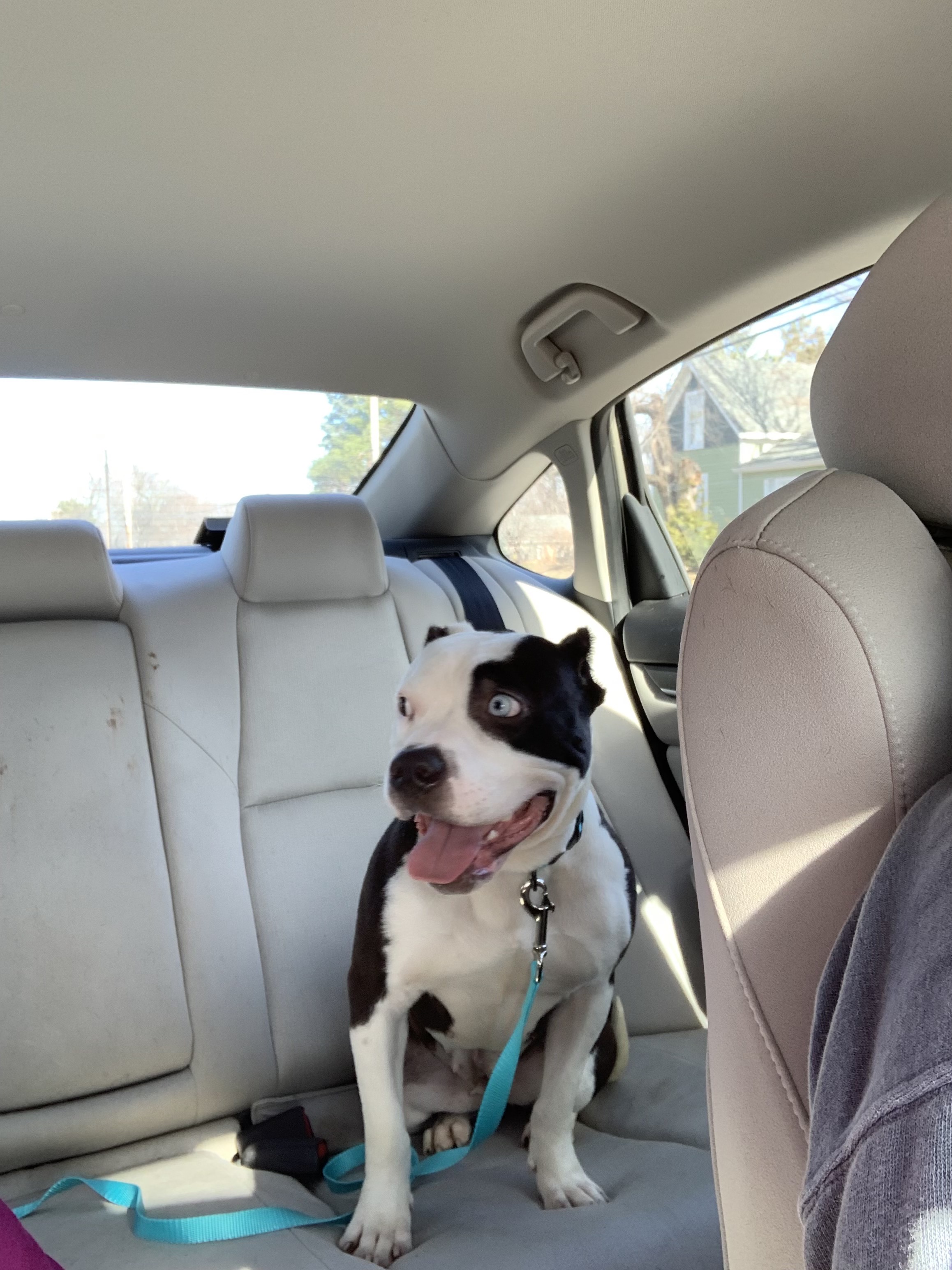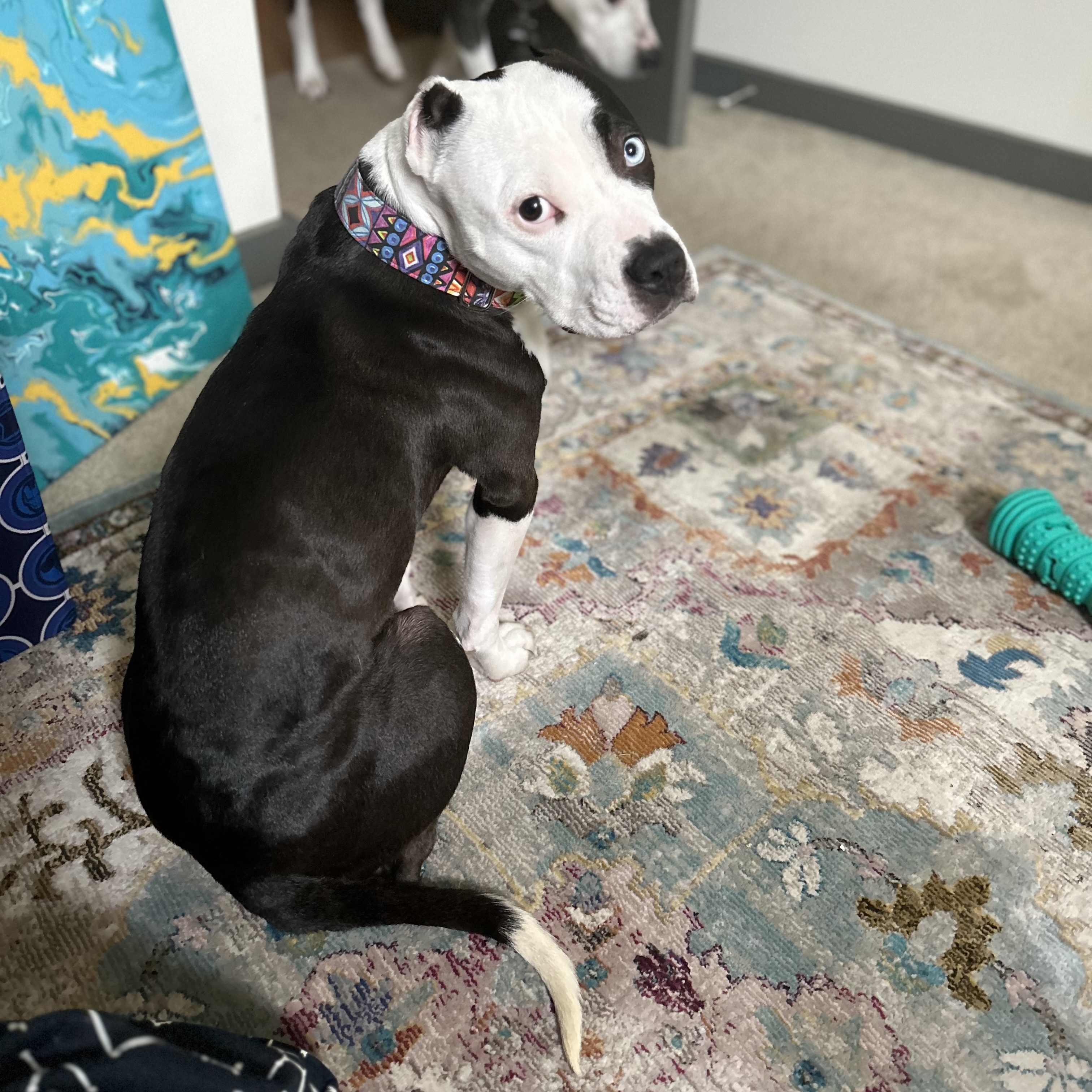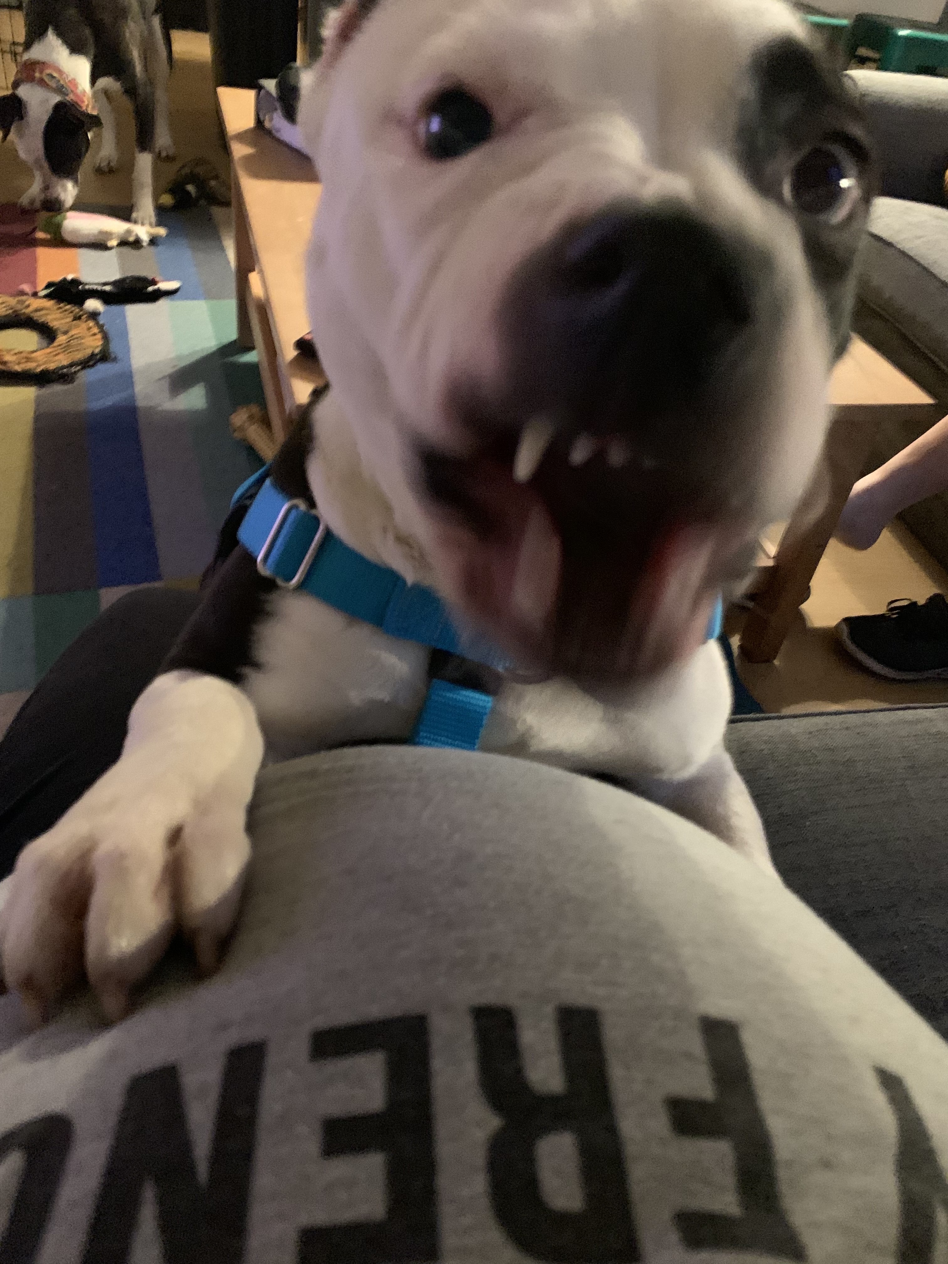 Opal is supposedly a three-year old American Bully mix from Animal Protective Association of Missouri. She likes to do a good, healthy boo-woo and nibbin’ is her love language. No one will ever get to be in our apartment at 19:00 as long as she lives; they will not survive her Demonic Witching Hourâ„¢.